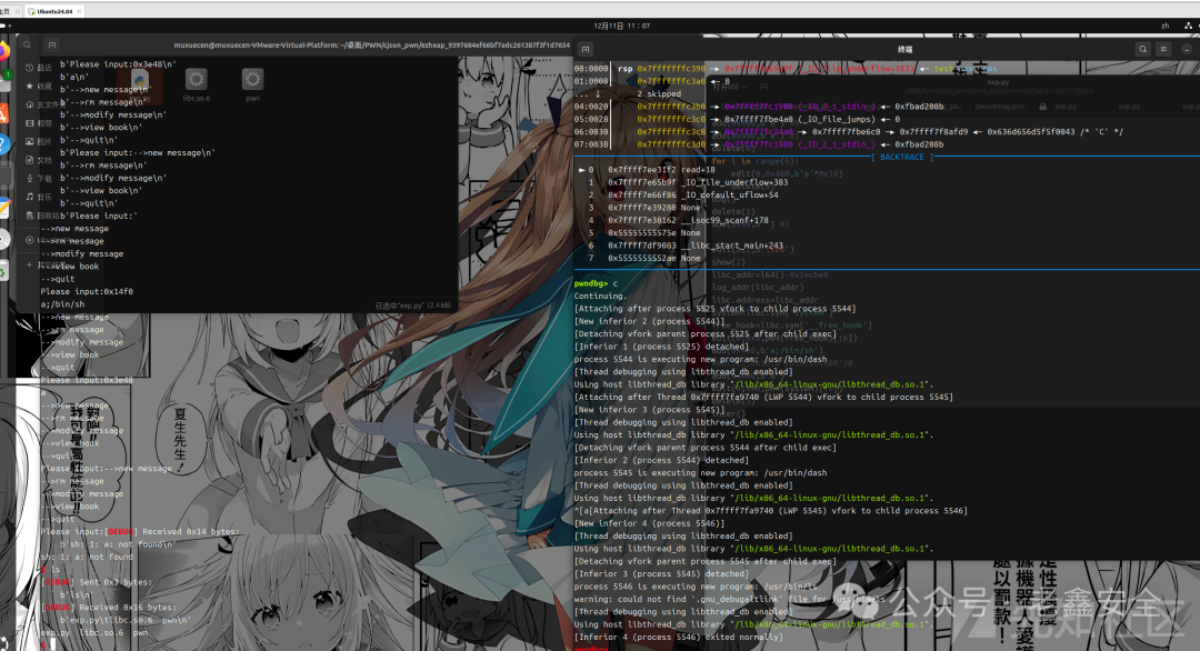 没有置0 这里存在uaf漏洞 并且是2.31 存在uaf漏洞且没限制基本随便打了,这里难点就是因为是json的传输,导致泄露的时候会有一些干扰 我们要通过调试来调整传输的东西进行泄露