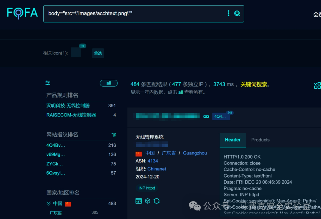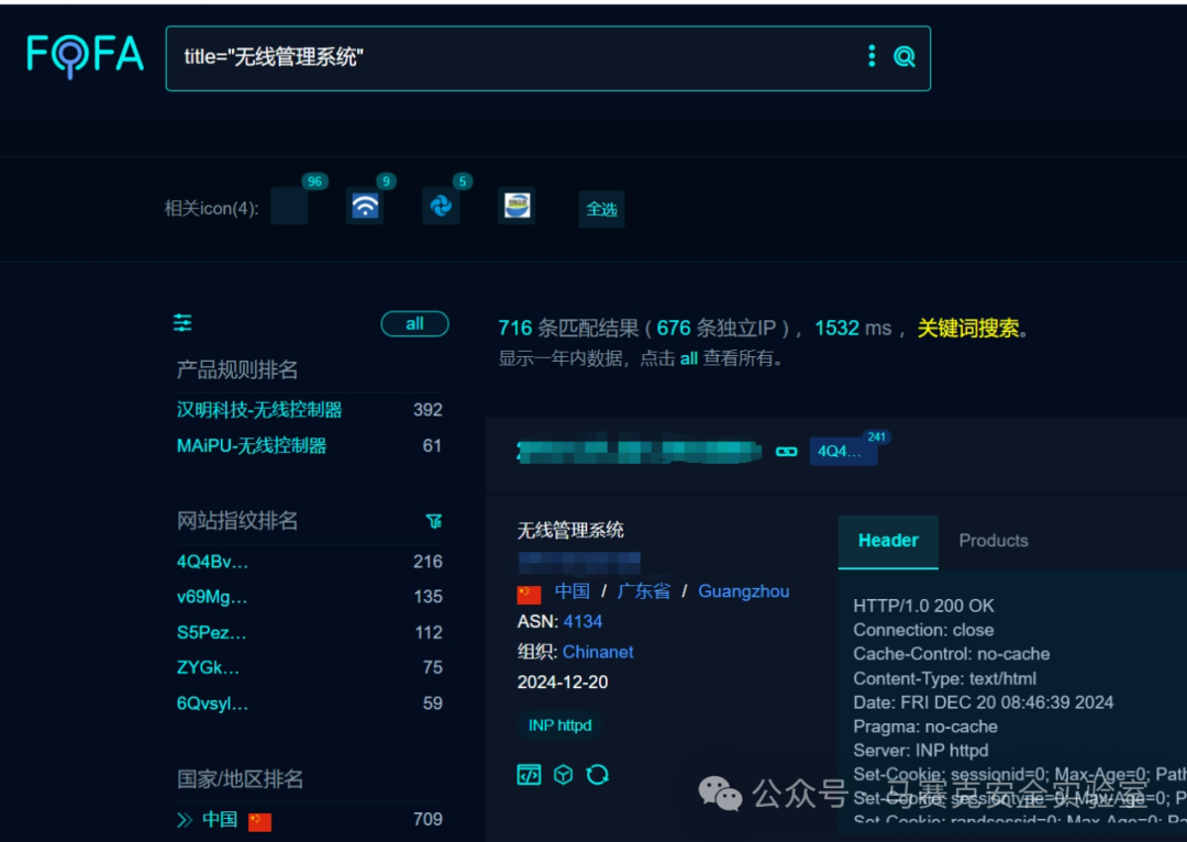 漏洞描述:迈普无线管理系统是迈普通信技术股份有限公司自主研发的一套高效、智能的无线网络管理平台。该系统支持对无线接入点(AP)、无线控制器(AC)等设备的集中管理和配置,提供丰富的业务类型和强大的管理功能。通过迈普无线管理系统,用户可以轻松实现无线网络的规划、部署、监控和维护,确保无线网络的高效、稳定运行。其接口/exportConfigByHttp存在信息泄露漏洞,可获取敏感信息。
