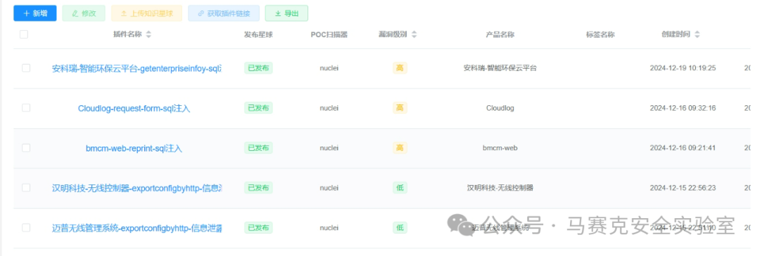 赛克安全本周漏洞推送(12.15-12.20)涉及Cloudlog、bmcm、汉明科技-无线控制器、迈普无线系统等产品相关漏洞