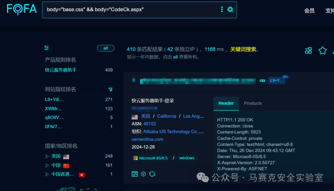 漏洞描述:快云,一个专业的云计算公司,30多万用户的信任之选!采用前沿云计算技术,专注打造专业的公共云计算服务平台。专业提供快云服务器、快云方案等云计算服务产品。其接口/FileMenu/filemana.aspx/GetDetail处存在任意文件读取漏洞,攻击者可获取敏感信息。