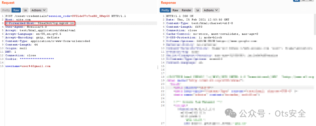 带有“X-Forwarded-Host”标头的密码重置请求图像