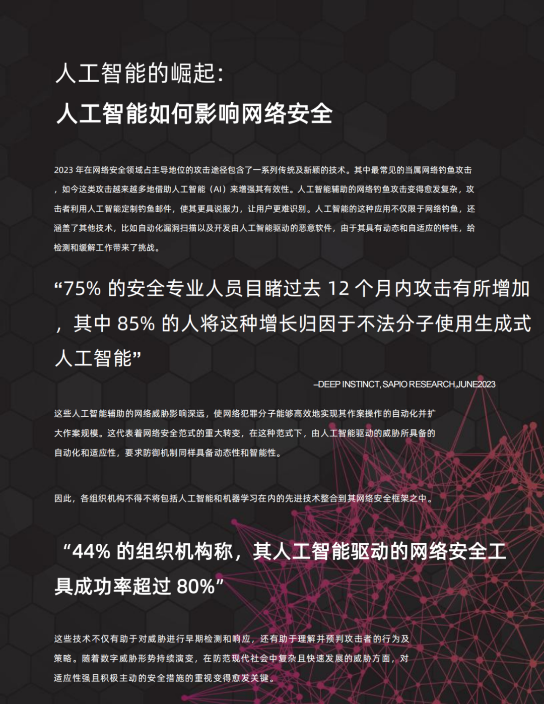 然而,人工智能并非只对攻击者有利,它也为防御方带来了全新的机遇和手段。据调查发现,44% 的企业反馈 AI 驱动的安全工具在威胁检测和响应过程中表现卓越。安全团队通过将人工智能与机器学习技术深度整合,如同为自己配备了一双 “火眼金睛”,能够更加迅速地识别潜在威胁,并凭借对海量数据的分析预测能力,提前洞悉攻击者的行动模式。这使得防御方在网络攻防的激烈对抗中逐渐扭转局势,从被动挨打转变为主动出击,在这场没有硝烟的战争中重新占据有利地位,为守护网络安全注入了强大的力量。