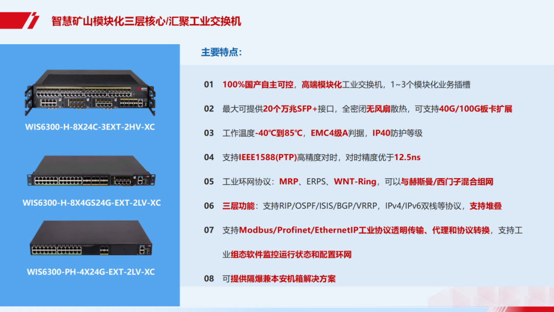 矿用有线主干网络设备支持Ethernet/IP、PROFINET、MODBUS等工业以太网协议透明传输和协议转换