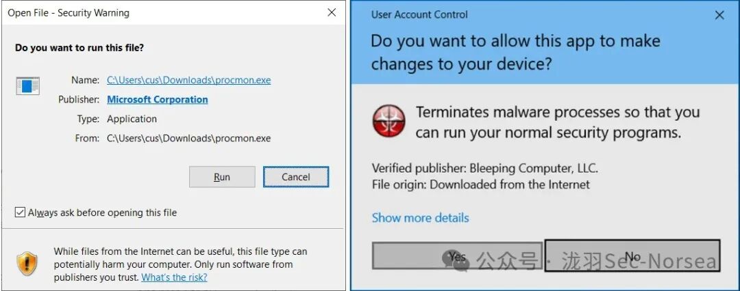 – 绕过系统提示:用户在无感知的情况下运行了恶意文件;