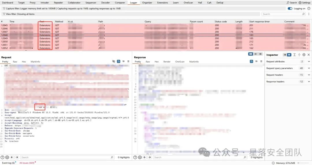 在Logger模块中查看扫描流量,选择Extensions类型如下