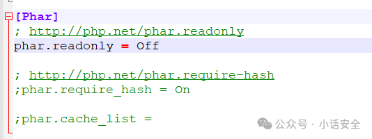 生成phar文件需要修改php.ini中的配置文件,将phar.readonly设置为off