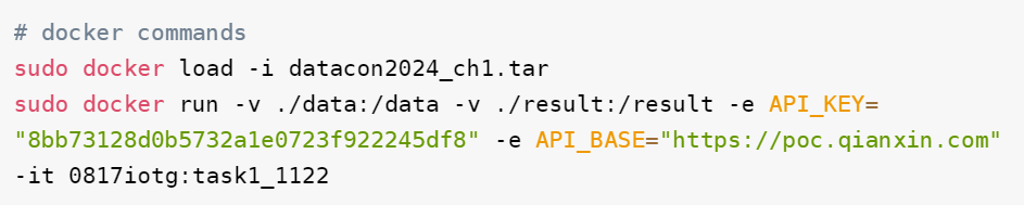 使用下述代码导入镜像,挂载数据集目录与输出目录,提供API_key并运行镜像