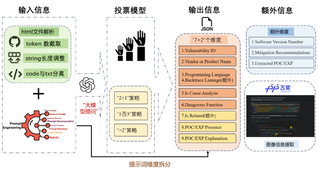 • 扩展框架功能与识别范围,使其能够识别版本、修复建议;提取POC/EXP代码;以及支持图片内容识别。