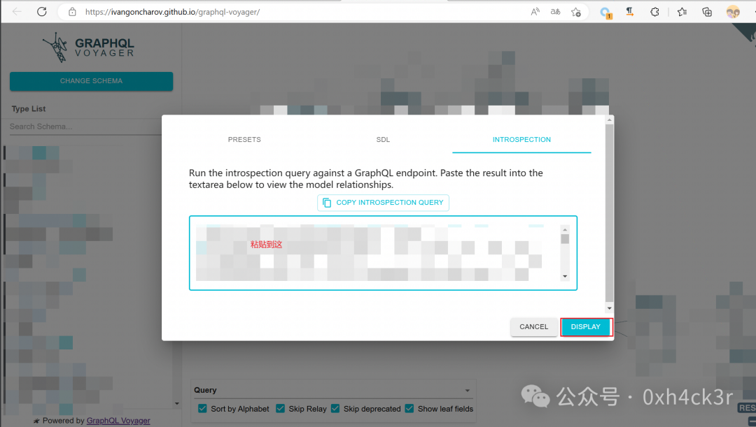 然后点击display即可得到数据库结构,接下来我们根据数据库结构去构造查询语法或者修改语法即可
