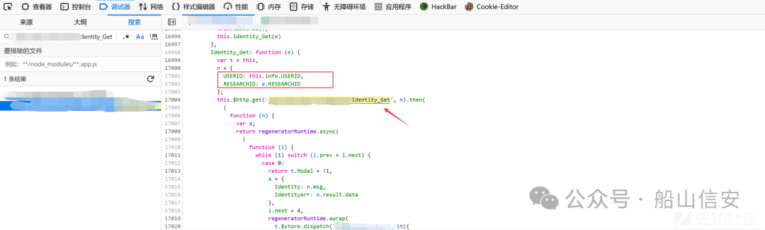 查看前端源码,发现Identity_Get接口,且存在userid和researchid参数