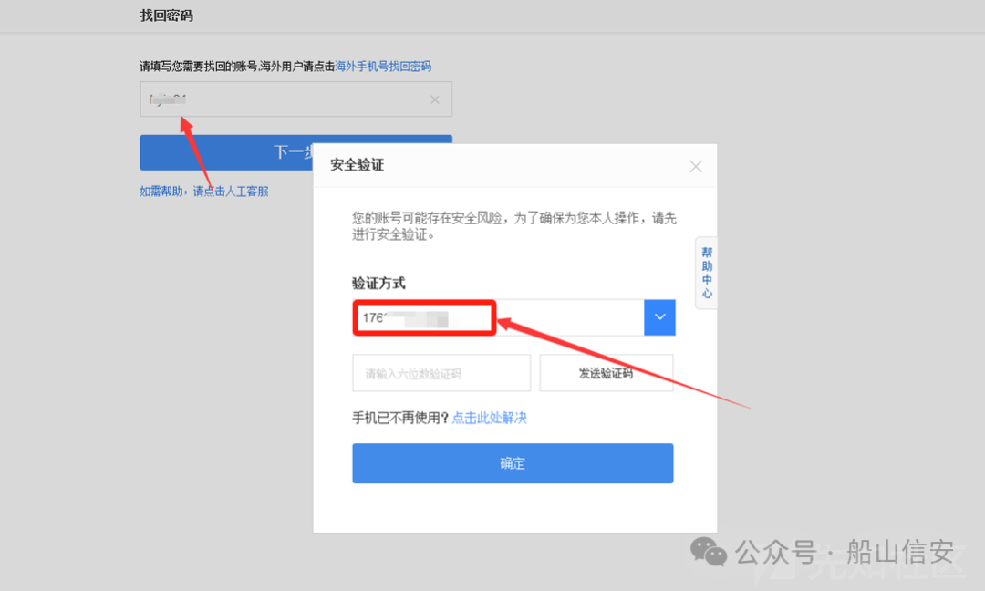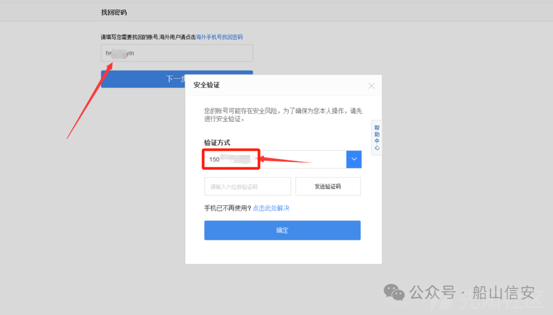 直接在找回密码处输入用户名密码,获取到手机号信息