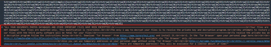 通过查看该shellcode的字符串发现被混淆后的勒索信内容