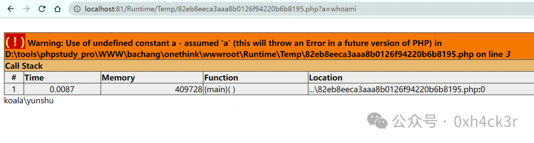 这样一来,只需要访问这个缓存文件即可getshell,需要写马的可以自己重新尝试构造用户名。接着在链接后面拼接: