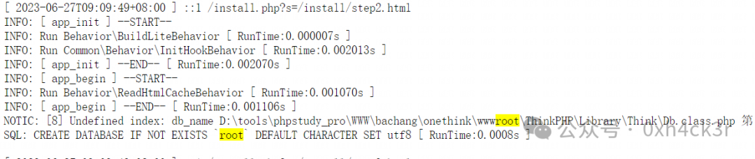 最后这个呢是一个巧方法,若对方部署onethink时,未关闭日志记录,则会记录程序运行时的一些信息,因为onethink是基于tp3.2.3的,因此这个日志看起来好像跟tp3.2.3的日志一样,但是注意到一点就是onethink每个application都是单独存放的日志,并且我们知道日志命名格式为:23_06_30.log,这样我们只需要枚举出日志名即可获取到敏感日志了。