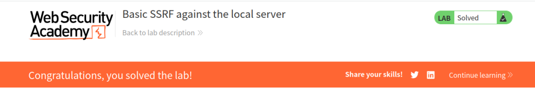 本次练习使用的靶场是portswigger,需要注册登录才能使用。实验不难,主要实际操作体会一下SSRF漏洞的简单利用和危害。