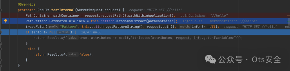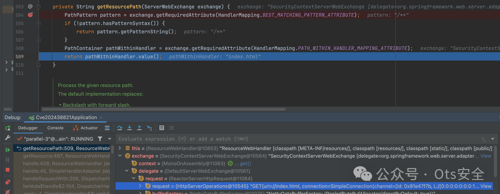 例如,使用路径 ..//index.html,请求的路径将使用 进行解析 exchange.getRequiredAttribute(HandlerMapping.PATH_WITHIN_HANDLER_MAPPING_ATTRIBUTE),结果为 index.html。因此,攻击者可以利用此机制。