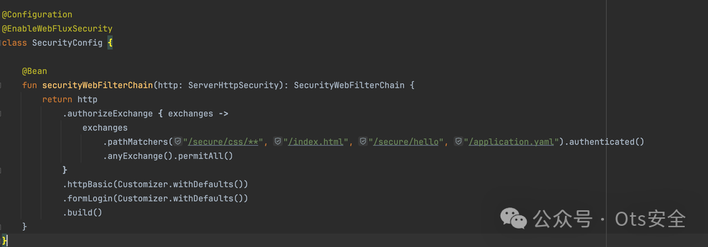 让我们配置以下设置来保护对特定路径的访问,包括 /secure/hello、 /index.html和 /application.yaml: