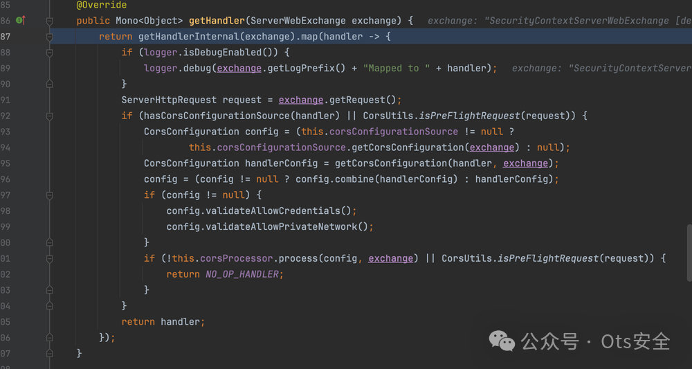 给定一个 http 请求(封装在 ServerWebExchange 中),getHandler 实际上负责解析该请求的处理程序。