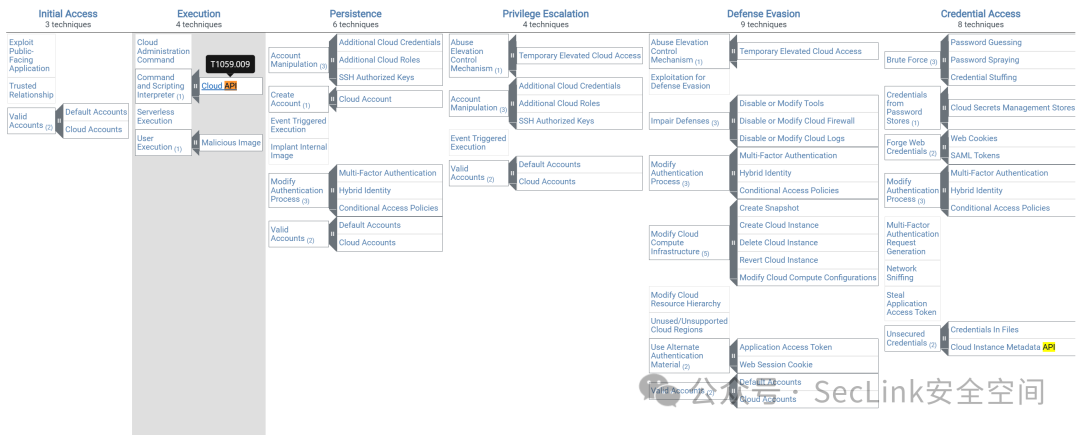 Mitre ATT&CK for Cloud:https://attack.mitre.org/matrices/enterprise/cloud/
