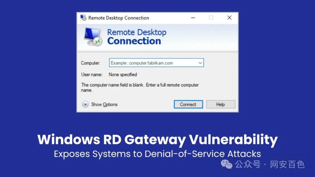 Microsoft 在其 Windows 远程桌面网关 (RD Gateway) 中披露了一个重大漏洞,该漏洞可能允许攻击者利用争用条件,从而导致拒绝服务 (DoS) 攻击。