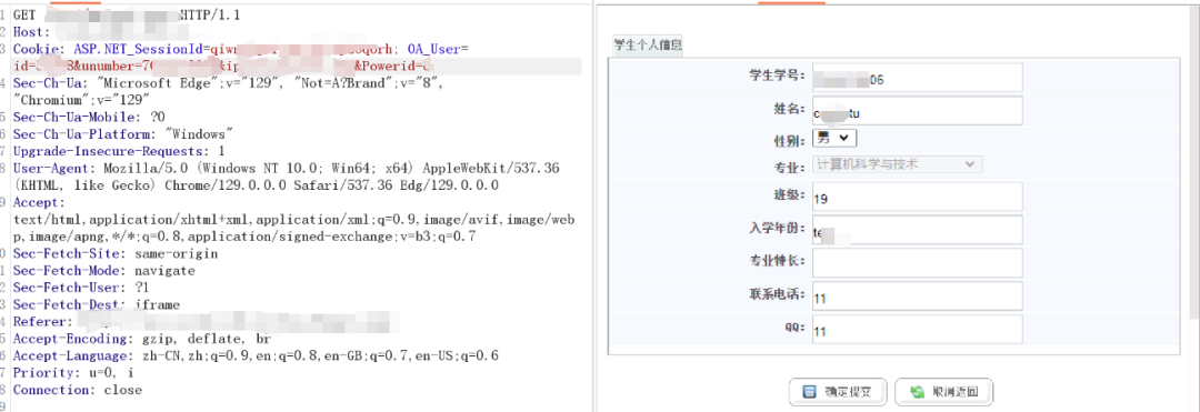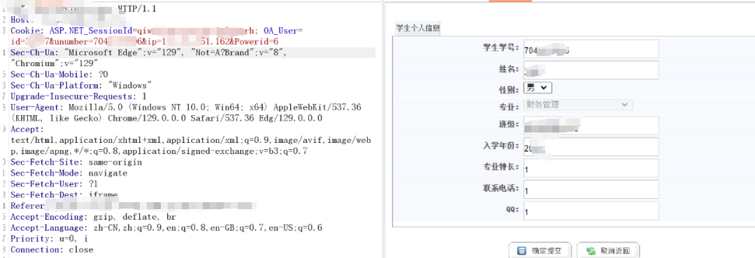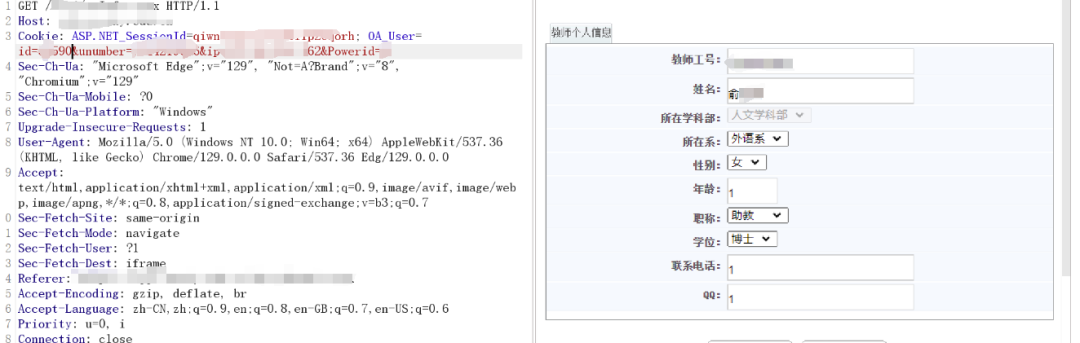 发现cookie有OA_User,unumber,Powerid字段,OA_User为id号,unumber为用户名,powerid为权限组
