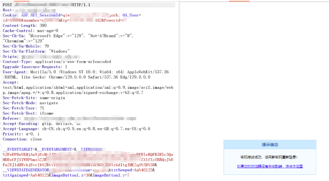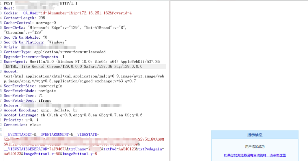 抓包并点击提交,将OA_User修改为txtUname对应的即可成功修改
