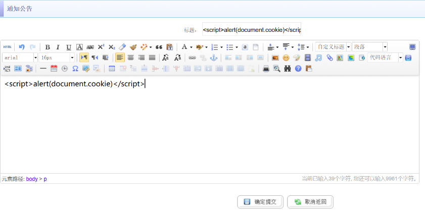 这个危害还是挺大的,所以查看公告的学生或老师或管理员都会弹窗,假如打个危害大的payload可以做到接管所有人账号密码