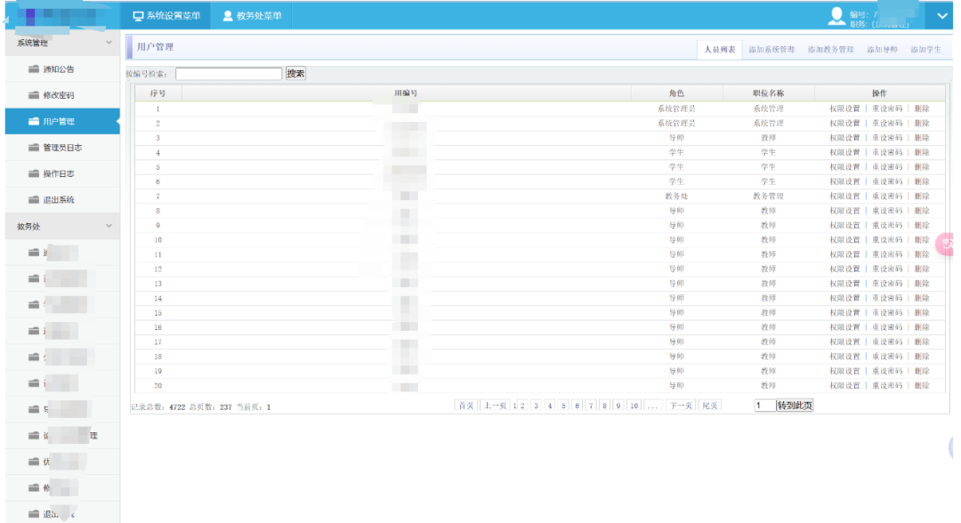 通过bp爆破发现管理员id为1 ,powerid为4,所以powerid 6为学生,5为教师,4和1为管理用户。