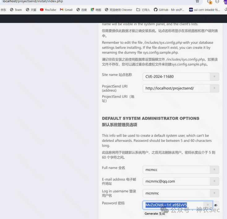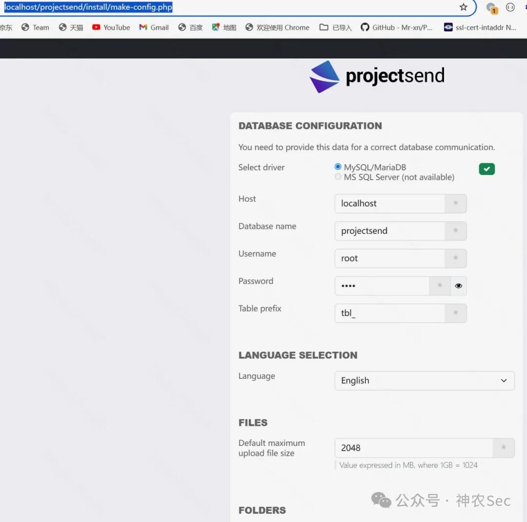 访问http://localhost/projectsend/install/make-config.php进行配置
