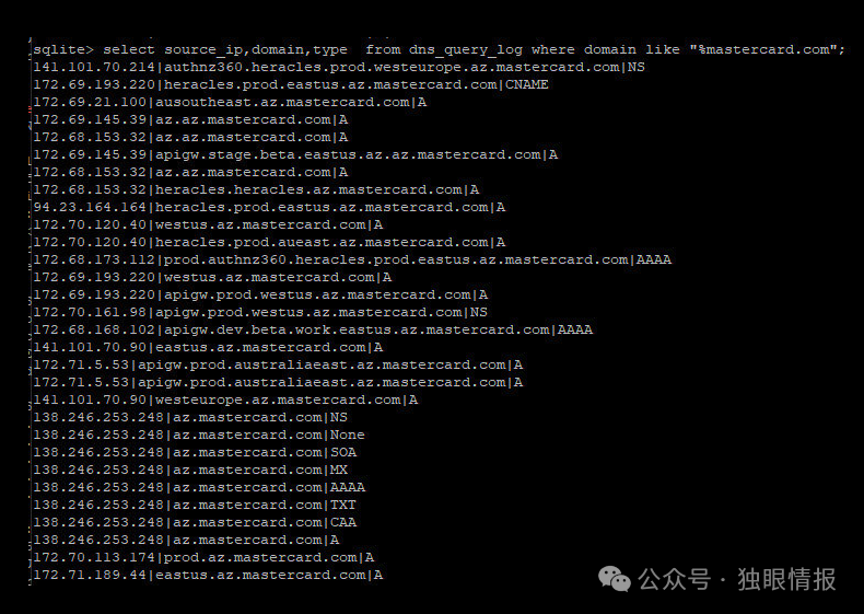 Caturegli 在 LinkedIn 上针对万事达卡公开声明的后续帖子中写道:“我们显然不同意这一评估。但我们让你来判断——以下是我们在报告问题之前记录的一些 DNS 查询。”