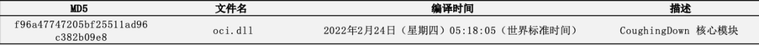 MSDTC 服务加载并执行了一个名为 “oci.dll ”的DLL 文件。通过分析该文件,确定它就是CoughingDown 核心模块。