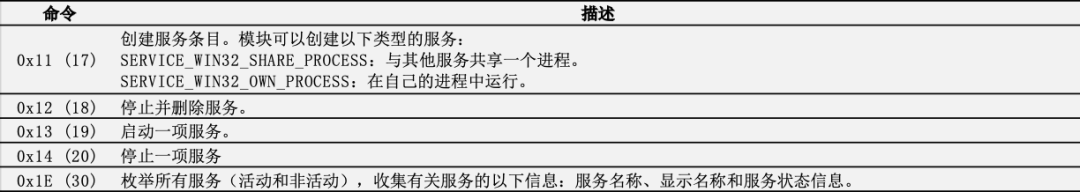 为了执行存根代码,注入器会用服务进程内存中的存根代码地址替换原来的服务控制处理程序。然后通过向服务发送SERVICE_CONTROL_INTERROGATE控制代码来触发存根。存根执行完毕后,注入器将存根代码从服务内存中删除,并恢复原来的服务控制处理程序,从而完成清理工作。