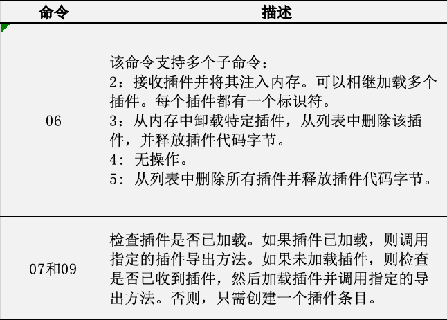 插件是DLL文件,使用序号导出三个方法。插件协调程序首先调用序号为3 的插件导出方法。该方法负责将插件DLL 注入内存。然后,协调器调用插件中序号为1 的导出方法,即DllMain方法。该方法使用所需的数据结构初始化插件。最后,它会调用序号为2 的插件导出方法。该方法实现插件的功能。