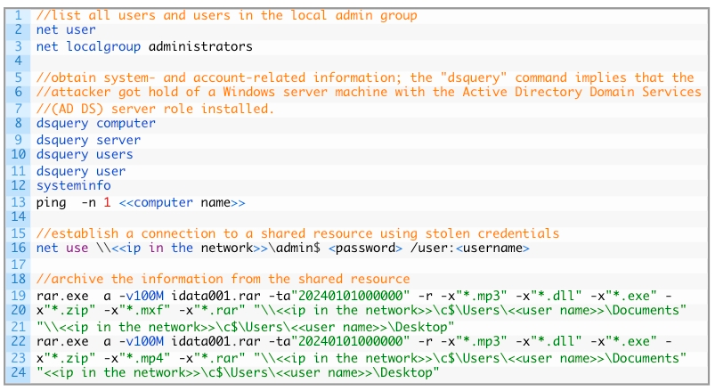 攻击者通过向DllHost.exe 进程注入cmd.exe 来启动命令shell。威胁行为者执行了以下命令: