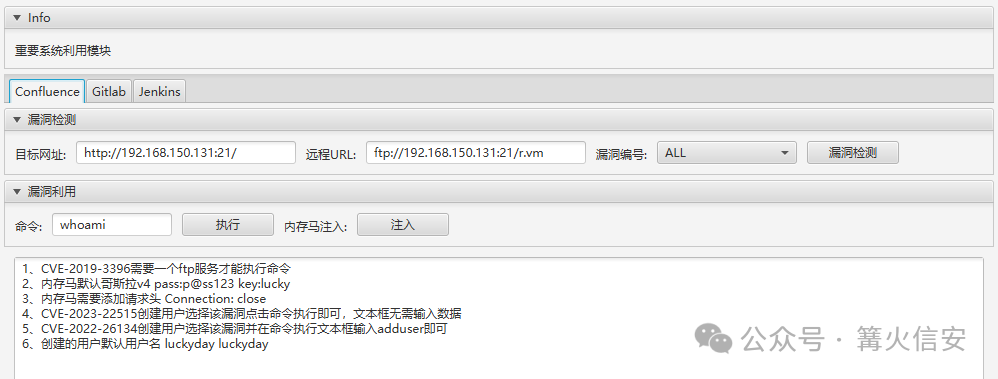 6、RedTeam模块目前集成了Confluence、Gitlab系统的漏洞利用检测,以及Jenkins masterkey解密的功能。