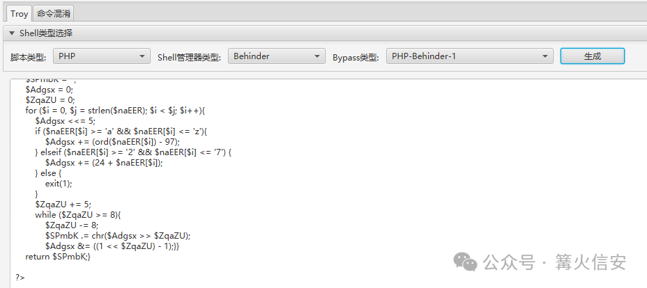 4、Bypass模块可以生成不同工具、不同语言的免杀Webshell,以及Windows和linux的混淆后的命令执行语句。