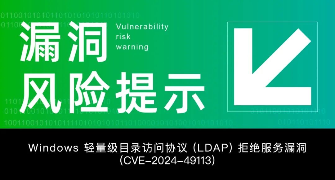 漏洞成因该漏洞源于 Windows 在实现 LDAP 客户端逻辑时存在的整数溢出问题。攻击者可以通过诱导目标服务器(域控制器或其他 Windows Server)访问恶意构造的 LDAP/CLDAP 服务,触发整数溢出,造成信息泄漏或导致 LSASS 进程崩溃,引发拒绝服务攻击(DoS)。漏洞影响攻击者使用公开的漏洞POC触发漏洞后,LSASS(本地安全授权子系统服务)进程将崩溃。LSASS 是 Windows 操作系统中关键的安全服务,负责身份验证、凭据管理和安全策略的执行。进程崩溃会导致目标服务器不可用,从而影响整个域环境的正常运行。处置优先级:高漏洞类型:整数溢出漏洞危害等级:严重触发方式:网络远程权限认证要求:无需身份认证系统配置要求:允许匿名 RPC 调用(默认),DNS查询可出网用户交互要求:无需用户交互利用成熟度:POC已公开(会导致服务不可用)修复复杂度:低,官方提供补丁修复方案利用条件 Prerequisite 021. 攻击者能够发起并触发目标服务器的 RPC 调用,通常需要在内网环境中。2. 目标服务器(DC)的 DNS 查询可出网。3. 攻击者能够接收来自目标服务器的 LDAP/CLDAP 请求,并返回恶意响应。常见利用场景:企业内网:攻击者已具备内网渗透条件,可通过 RPC 与域控通信,并在同一网段或路由可达位置上搭建恶意 LDAP/CLDAP 服务。公网风险:在少数情况下,若域控制器直接开放在公网且具备 DNS 出网解析能力,攻击链可以从互联网端直接触发,无需内网渗透环境,风险更高、传播范围更广。影响版本 Affects 03Windows Server 2022(2024 年 12 月补丁前的版本)Windows Server 2019(2024年12月补丁前的版本)以及任何使用受影响 wldap32.dll 版本、启用 LDAP 服务的 Windows Server 系列。更多影响版本可参考微软发布的安全公告https://msrc.microsoft.com/update-guide/vulnerability/CVE-2024-49113解决方案 Solution 04临时缓解方案1. 限制或禁止匿名 RPC 调用配置防火墙、组策略,或使用终端防护设备阻断对域控的非授权 RPC 调用,提高攻击难度。2. 阻断或监控相关流量。在内部网络或流量防护类安全设备上短期内进行严格监控或限制,例如:阻断对可疑外网域名的解析、检测并拦截可疑 NBNS 欺骗、以及阻断异常大小的 CLDAP 响应包。升级修复方案为彻底解决漏洞,建议尽快安装官方提供的补丁。微软已在 MSRC 发布官方安全公告,并在 2024 年 12 月补丁中修复了此漏洞。请尽快安装对应累积更新。
