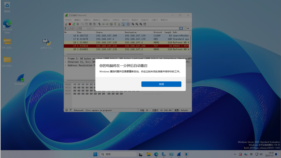 安信CERT已成功复现Windows 轻量级目录访问协议 (LDAP) 拒绝服务漏洞(CVE-2024-49113),截图如下: