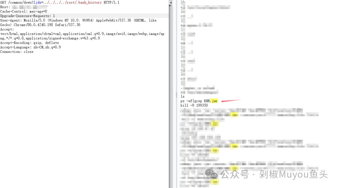 在某次测试系统时发现当前系统使用Apache Shiro框架搭建,但是并没有key进行利用,所以使用URLFinder工具爬取了系统JS中的所有接口,并放进BURP里进行批量测试,然后发现了/common/down?ljdz=这个接口存在报错。