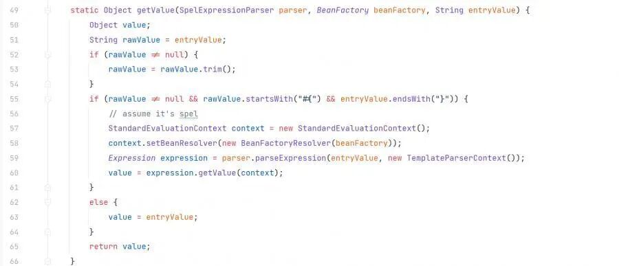 中,最后进入 getValue 执行 SpEL 表达式造成 SpEL 表达式注入。