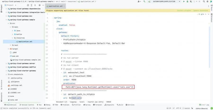 我们在配置文件中添加对应的 SpEL 表达式就可以触发漏洞