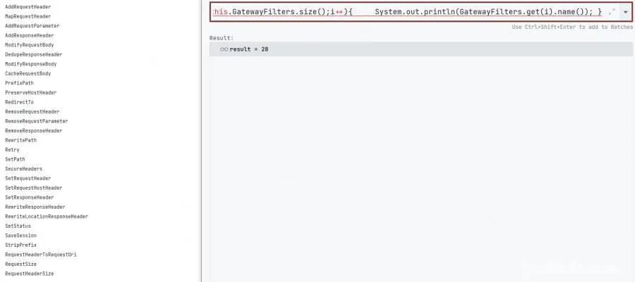 for(int i=0;i<this.GatewayFilters.size();i++){ System.out.println(GatewayFilters.get(i).name()); }