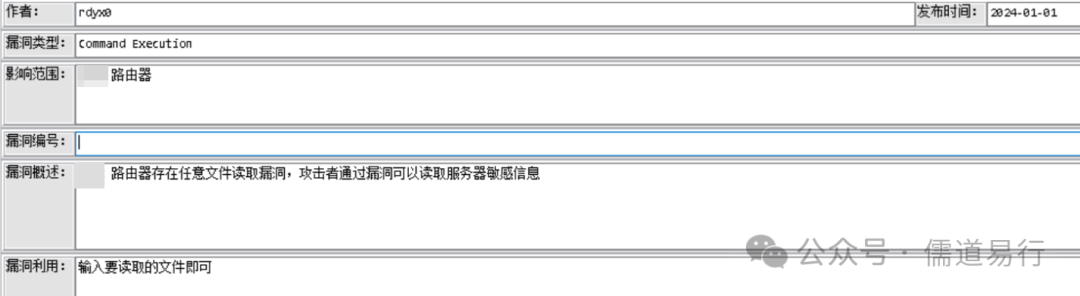 该文章内容仅用于学习交流自查使用,请勿利用文章内的相关技术从事非法测试,由于传播、利用此文所提供的信息、技术或者工具而造成的任何直接或者间接的后果及损失,均由使用者本人负责,所产生的一切不良后果与文章作者无关,公众号儒道易行及作者不为此承担任何责任,一旦造成后果请自行承担。