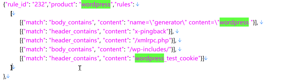 那么我们就需要编写一个可以产品名为 wordpress 的指纹规则,如图: