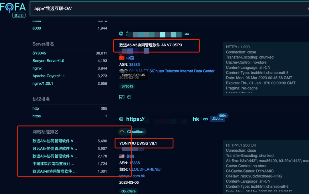我的做法是,首先去 fofa(指纹识别能力还不错) 上搜索,找到一个在线案例,然后通过观察其 header 信息、body 内容、标题等关键点,提取与该系统相关的信息作为其识别的特征,比如: