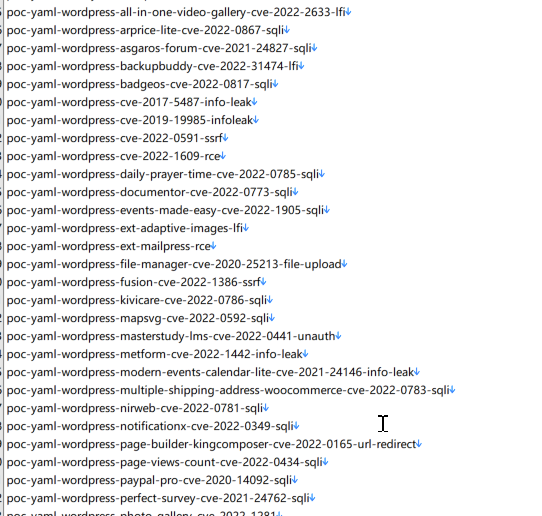 编写指纹规则时,我们想要让规则识别出的系统与其对应的 POC 联动,那么就需要在命名上与 poc 的命名保持一致,比如 xray 中关于 wordpree 的 poc 命名如下: