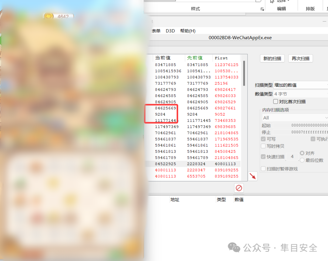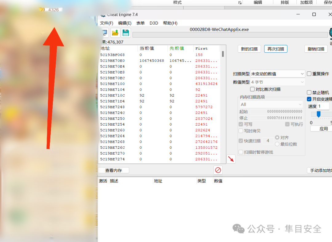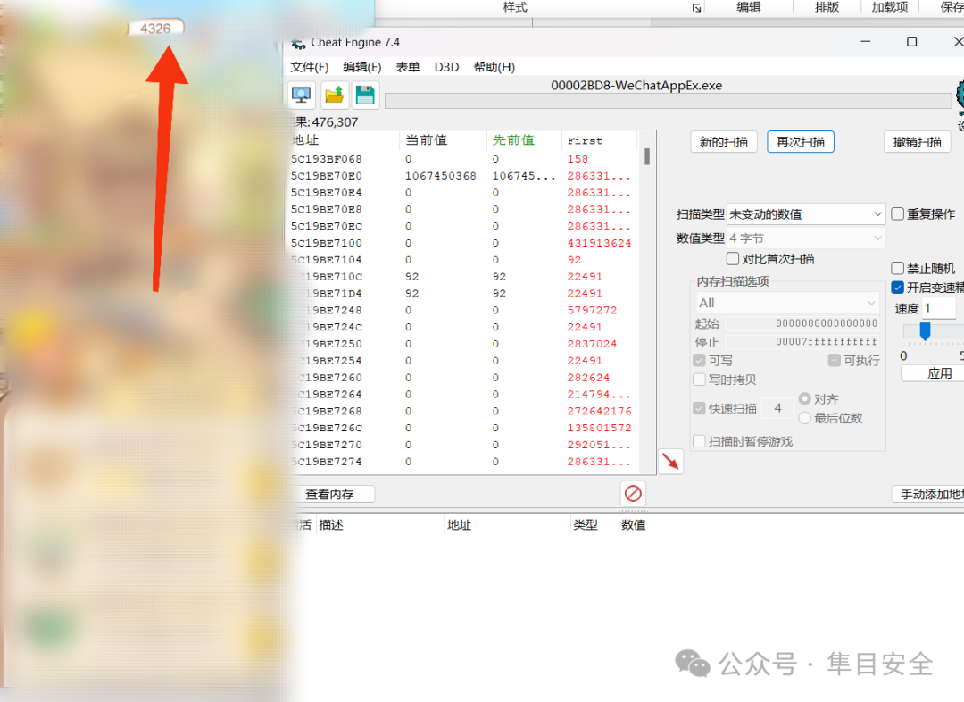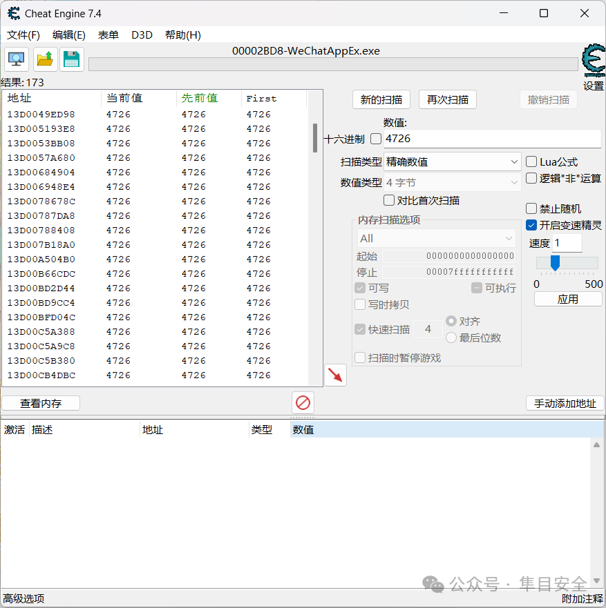 并未找到说明进行了加密,进行未知初始值扫秒,获取地址
