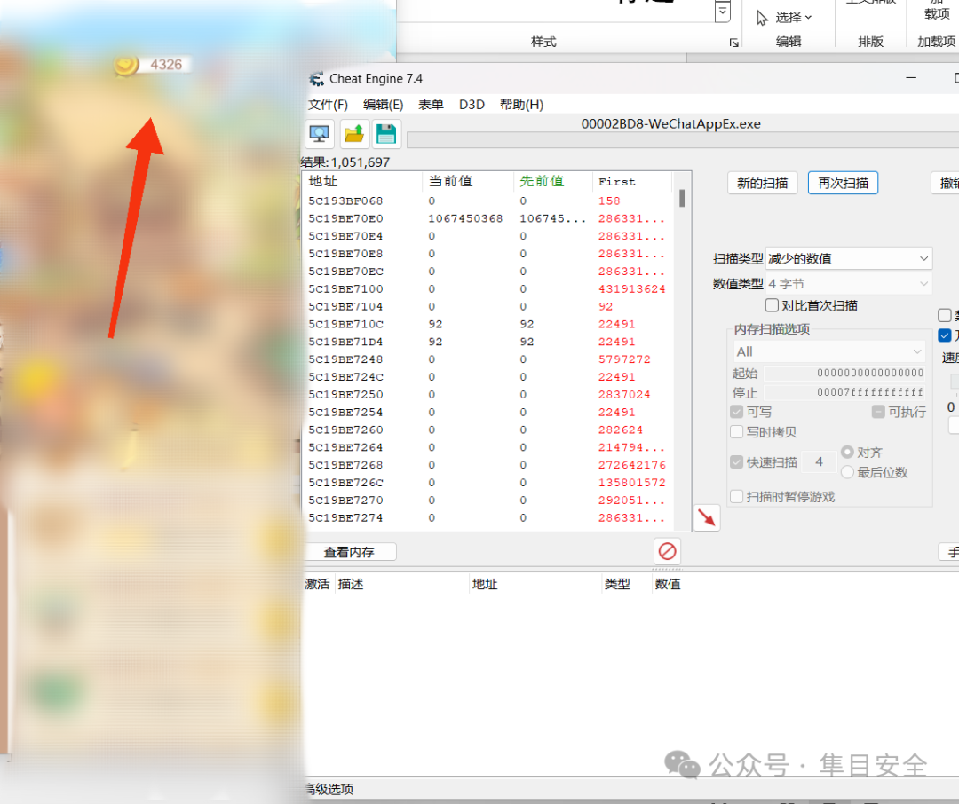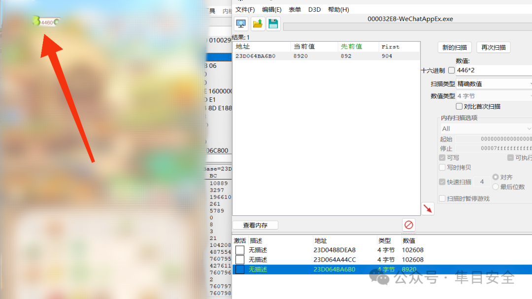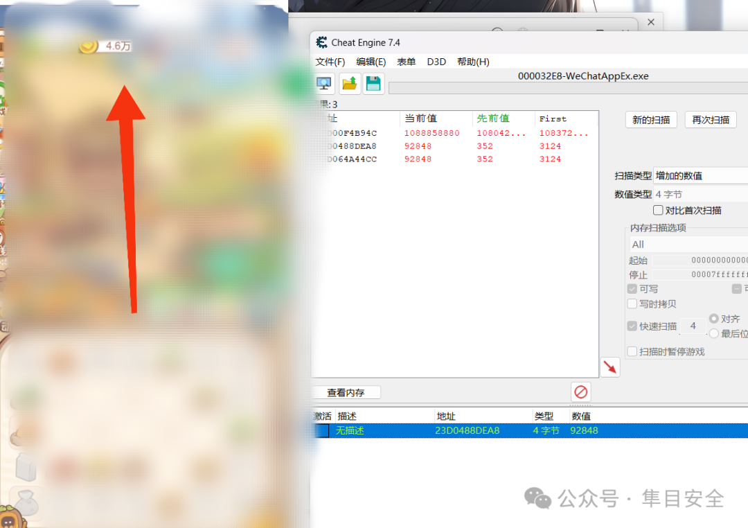 发现奇怪数值,数值为金币的2倍,尝试修改查看效果