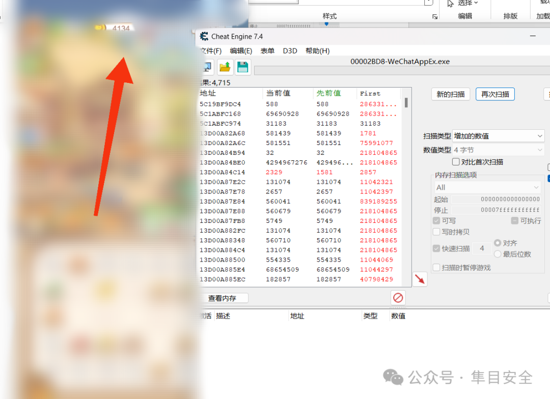 进入后,打开ce修改器,并选择到对应的进程,进程判断使用变速进行